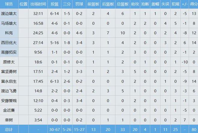 日本男篮数据如下: